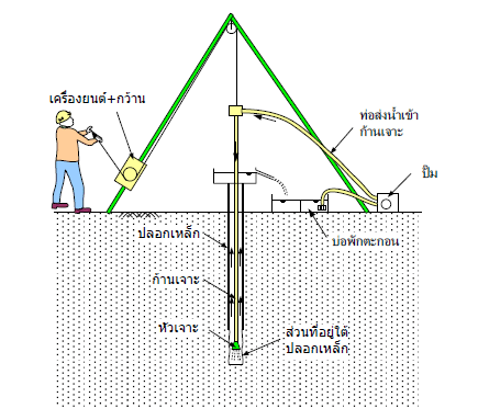 - การเจาะในชั้นดินอ่อนและแข็งปานกลางให้ใช้สว่านหมุน เจาะลึก 0.50-1.0 เมตร